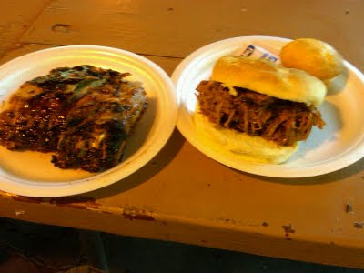 It took more than 30 minutes from the time my friend and I hopped in line to when we got our food. Yeah, it's a long time to wait, but what else would I be doing? Got a chance to talk, catch up, and listen to live music. In the end, it was worth the wait. As you can see above, I got a pulled pork sandwich with a cornbread muffin, and a quarter rack of ribs. Absolutely delicious! The sauce was amazing, and the meat was tender - the ribs fell right off the bone.